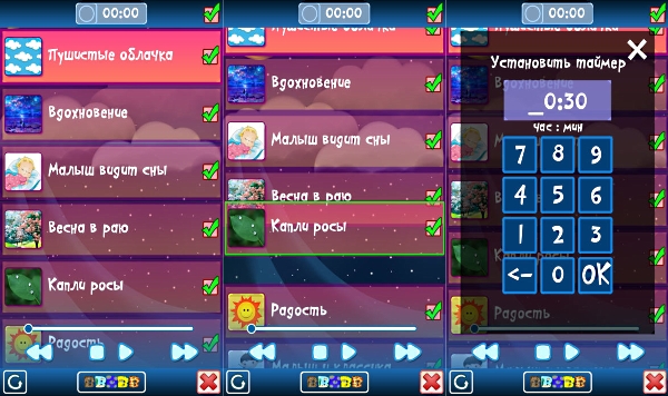 Наш обзор заканчивается приложением, при помощи которого можно уложить спать любого малыша. Пятнадцать мелодий и известных колыбельных песен на русском языке. Среди них «Колыбельная медведицы», «Спят усталые игрушки» и другие. Простая навигация, возможность поставить прослушивания всех песен подряд, или выбрать некоторые из них. Всем спокойной ночи!