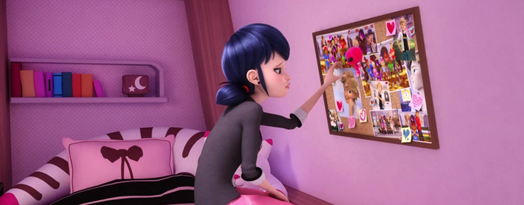 То, что Маринетт влюблена в Адриана, можно узнать ещё из первой серии, но стены её жилища, увешанные целой коллекцией фотографий парня и плакатов с ним, заставляют сомневаться в том, что эти чувства могут быть здоровыми.
