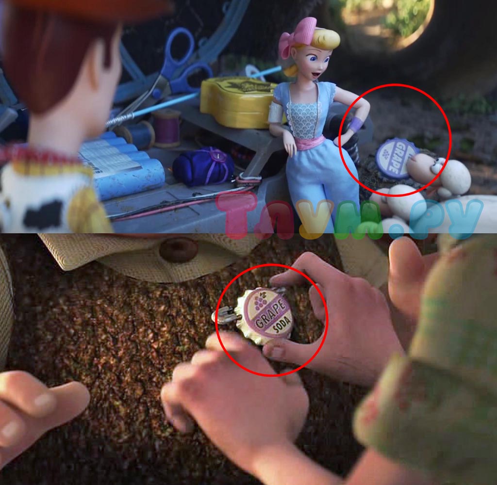 И «Вверх» тоже успел отличиться, засветившись в «Истории Игрушек 4». В сцене, где Вуди встречается с Бо Пип, овечки приносят ей крышку от газировки. Точно такую же Элли из «Вверх» подарила Карлу, когда они были ещё маленькими.