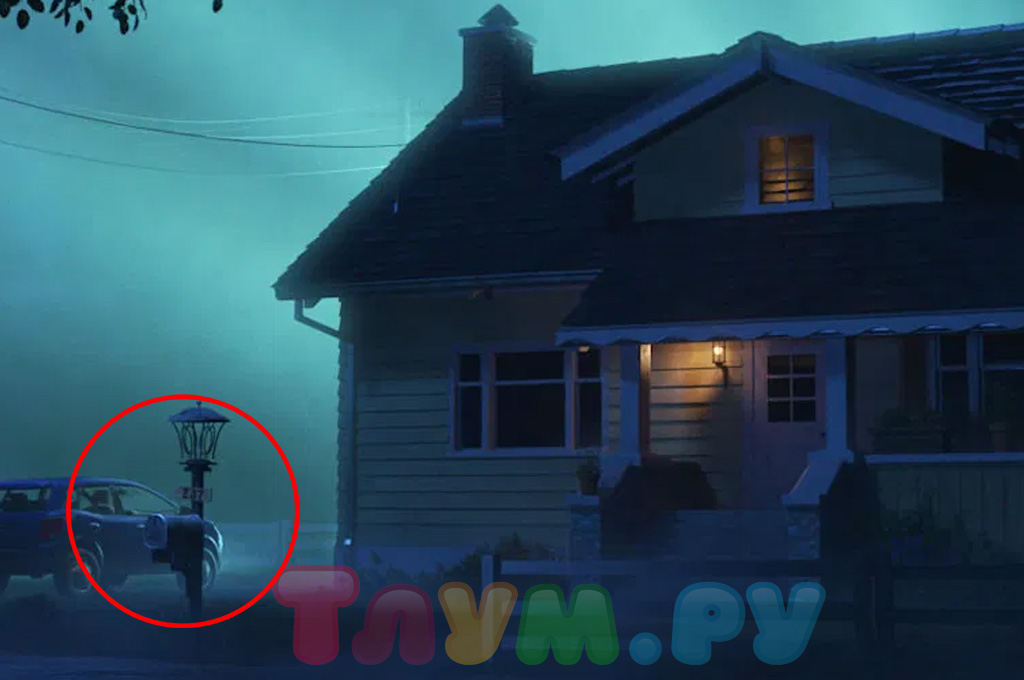 Помните очаровательную бабулю-одуванчик, владелицу антикварной лавки? Её дом совсем не такой миленький, как она сама — посмотрите только на пугающую атмосферу, которой он окутан! Кроме того, на табличке возле её жилища можно разглядеть номер 237 — он отсылает нас к фильму «Сияние» Стэнли Кубрика по одноимённому произведению Стивена Кинга. Именно в комнате с этим номером происходили все ужасы фильма.