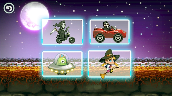 Нет ничего приятней и веселей, чем прокатиться с ветерком ночью во время Хэллоуина. Выбираем для себя героя: Дракулу на автомобиле, ведьмочку Сабрину на метле, Призрака на мотоцикле и даже пришельца Боба на его летающей тарелке, и отправляемся в полет-заезд. Управление тут элементарное, к тому же в этой игре нельзя разбиться. Так что двигаемся вперед, собираем звездочки, крутим флипы и любуемся настоящим «мрачным» пейзажем с привидениями, тыквами и прочими веселостями нечистой силы.