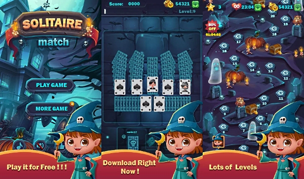 Наверное, нет в волшебном мире Хэллоуина такой ведьмочки, которая не любила бы раскладывать пасьянс. В данном случае нам предстоит достаточно простой пасьянс по типу маджонга. На каждом уровне карты будут раскладываться все более причудливым образом, а верхние из них будут открыты. Необходимо собирать пары открытых карт, а если таких нет на поле, то можно открывать карту из колоды.