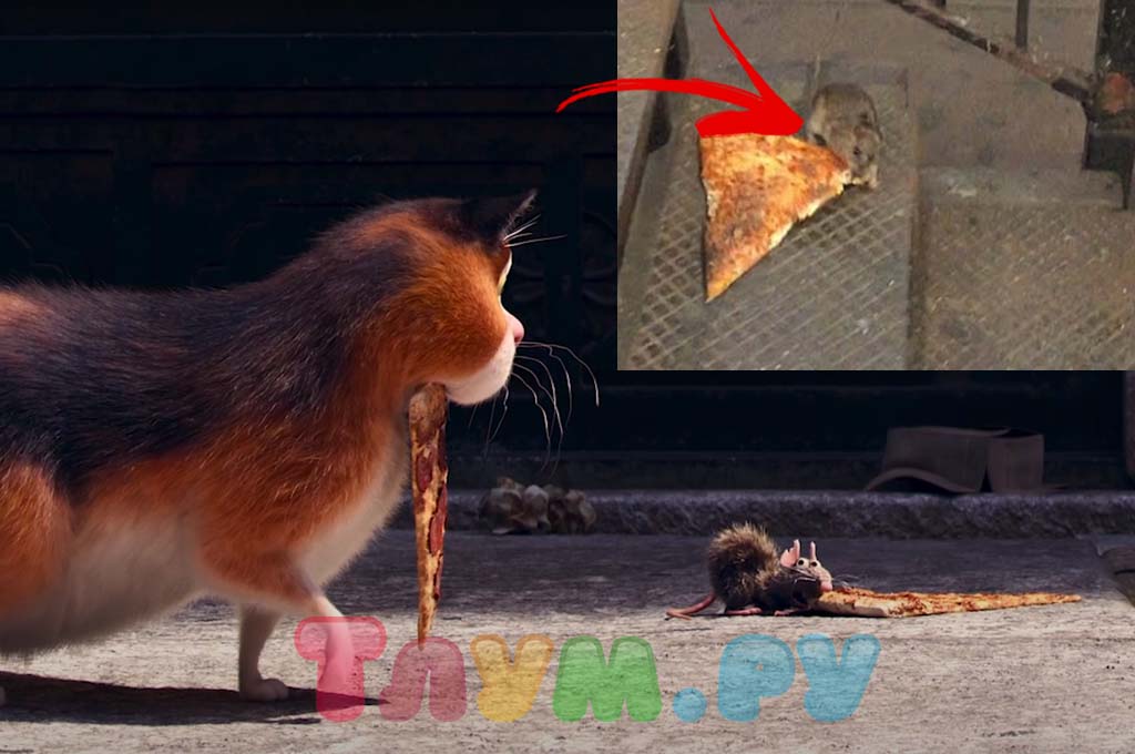 Когда Джо в образе кота идёт с куском пиццы для Души-22, он встречает крысу, которая также тащит пиццу. Это может быть отсылка на другой мультфильм студии Pixar, «Рататуй». Но, скорее всего, создатели мультфильма ссылались на забавный мемный ролик с крысой, которая тащит пиццу по лестнице.