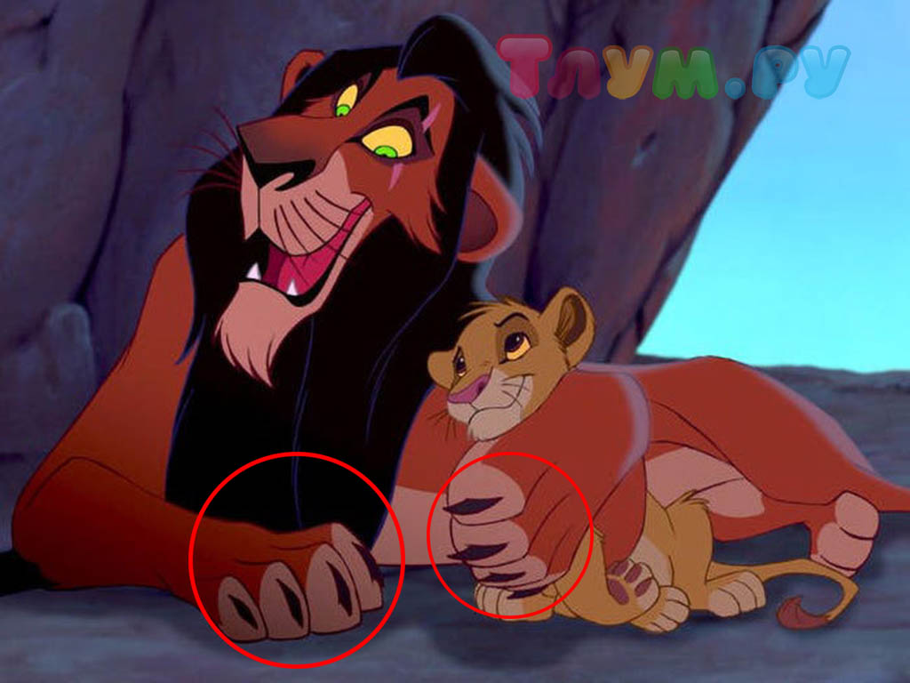 О злобной натуре Шрама из «Короля Льва» можно узнать ещё в самом начале мультфильма — именно он единственный из всего прайда всегда держит когти выпущенными. Осторожно, так можно и самому пораниться!