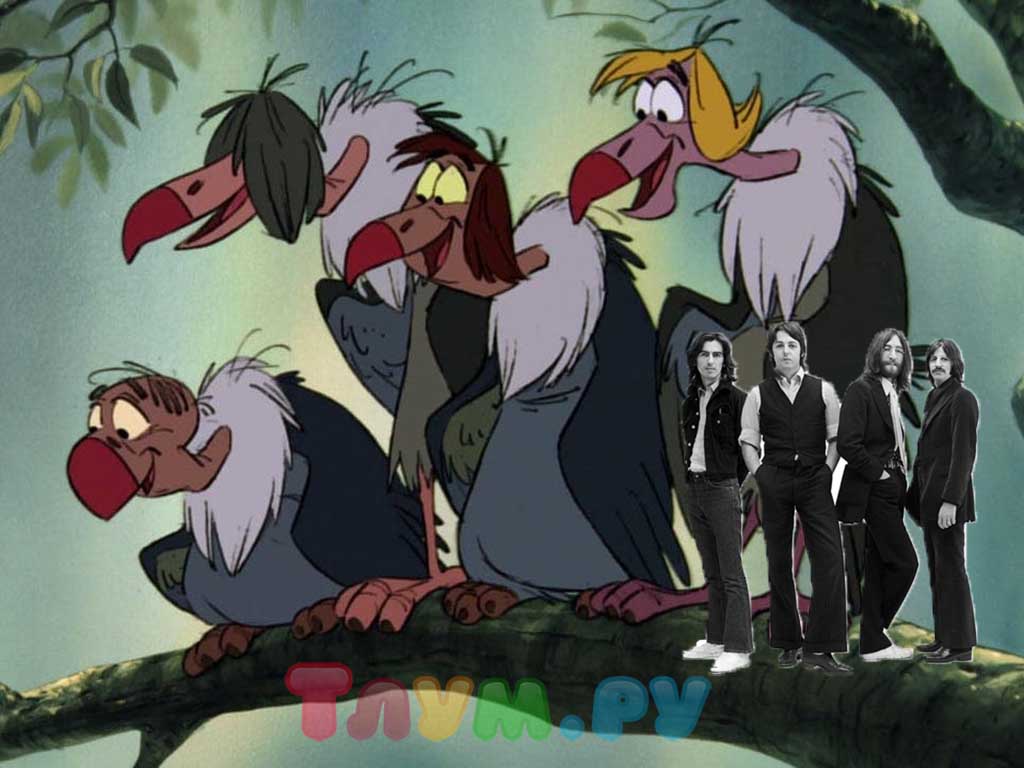 Мультфильм «Книга джунглей» подарил зрителям множество ярких образов разных тропических зверей. И кое-кто из них имел особенное значение — стервятники со стильными причёсками изначально символизируют группу The Beatles, и озвучивать их должны были именно они.