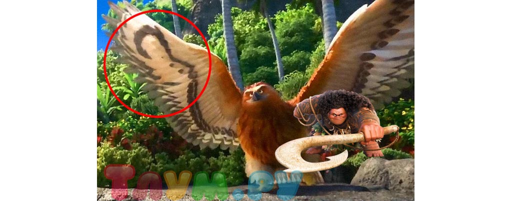 Когда Мауи из «Моаны» превращается в какое-нибудь животное, одна из деталей его внешности напоминает по форме волшебный крюк. Такие мелочи не всегда можно заметить, но уж точно интересно искать.