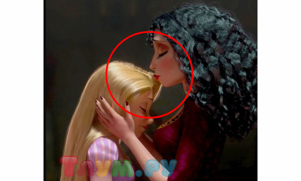 И опять речь идёт о «Рапунцель» — на этот раз всё внимание на Матушку Готель и её своеобразные проявления любви. Конечно, Рапунцель она не любила, зато очень любила её волшебные волосы, дающие ей молодость. А в моменты, когда Готель убеждала девушку, что за пределами башни её ждут одни ужасы и беды, обнимала, гладила и целовала ведьма именно волосы.