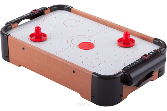 Для тех, кто хочет что-то попроще, чем куча крутящихся-вертящихся ручек, можно предложить поиграть в аэрохоккей. Тут у каждого есть своя бита, а единственная цель — загнать шайбу в ворота противника. Такие игры часто стоят в торговых центрах и всегда привлекают внимание малышей. Обрадуйте их тем, что в такую игру можно играть и дома.