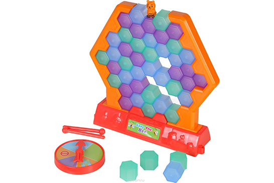 Еще одна игра на развитие терпения и ловкости рук — вытащите цветной блок из сот, да так, чтобы пчелка не упала! Игра отлично подойдет и для дома, и для улицы. Количество игроков может быть любым, главное, чтобы настроение было хорошее.