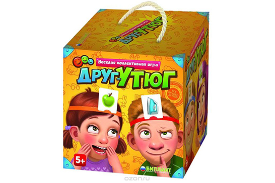 Вы когда-нибудь играли в «Бумажки на лбу»? «Друг-утюг» тоже самое, только детская версия. Тут на карточках не написаны, а нарисованы разные бытовые слова («утюг», «костер», «яблоко»), чтобы облегчить задачу малышам. Каждый надевает обруч с карточкой и с помощью наводящих вопросов пытается угадать, что же за предмет у него на лбу? Очень веселая игра, развивающая логическое мышление.