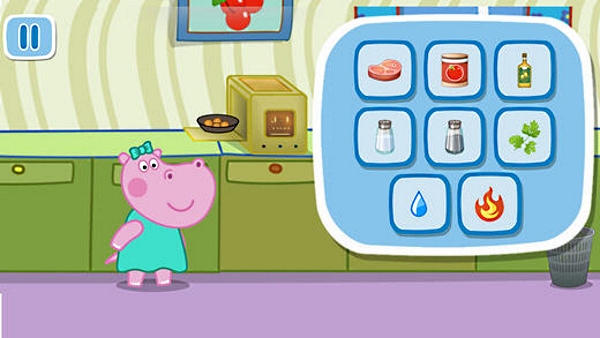 Любознательная малышка Хейзел решила приготовить обед самостоятельно. Для этого ей необходимо сходить в магазин, найти и сложить в корзинку необходимые продукты и посуду. Следующим шагом будет сам процесс приготовления первого, второго и десерта. После чего можно будет сесть за стол и угостить своих питомцев.