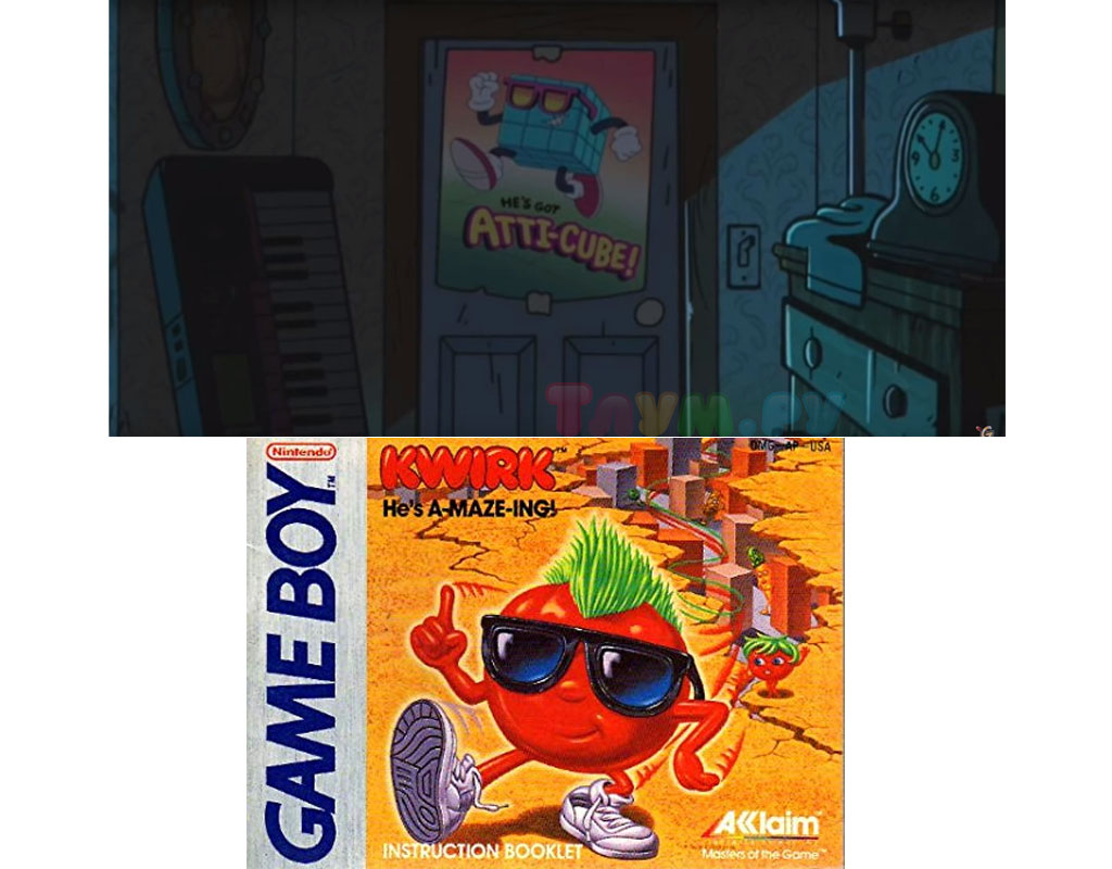 В комнате Суса много плакатов — но один особенно привлёк наше внимание. Постер, который висит на обратной стороне двери в комнату, напоминает обложку классической японской игры Kwirk 1989 года выпуска. Вот только герой тут квадратный, а не круглый.