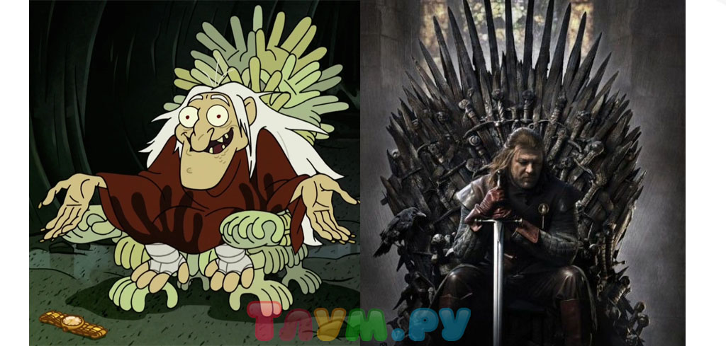 Не ожидали такой отсылки? А она есть! В пещере Ручной Ведьмы в одной из серий руки складываются таким образом, что напоминают печально известный Железный Трон, за который и боролись почти все персонажи «Игры Престолов».