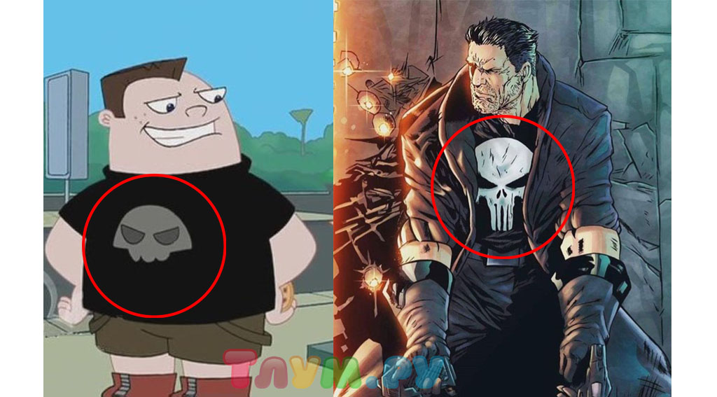 Чаще всего «Финес и Ферб» делают отсылки на самих же себя, но в этом случае мы нашли реверанс совершенно другому проекту — взрослому комиксу «Каратель». У героя Бьюфорда из «Финеса и Ферба» чёрная футболка с черепом (кстати, такая же была у Сида из «Истории Игрушек»), отсылающая нас к главному герою комикса, Френку Каслу.