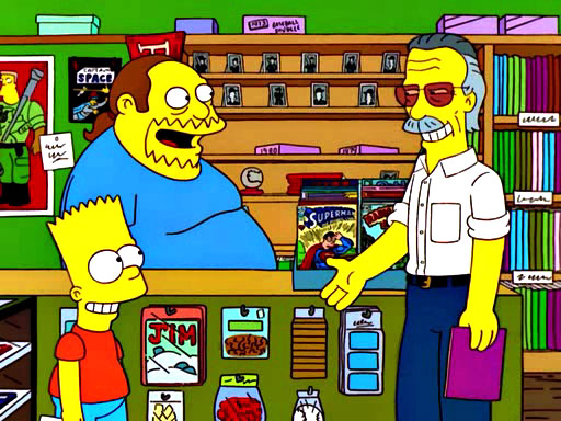 Мог ли Стэн Ли миновать появление в этом легендарном американском анимационном ситкоме? Полагаем, что нет. Вот «Я яростный и жёлтый», 18-я серия 13-го сезона. Стэн Ли собственной персоной, напутствует Барту заветы настоящего комиксиста.