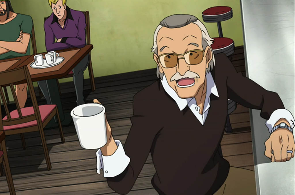 Как насчёт аниме? Знаменитая японская студия Bones выпустила сериал по манге, написанной, правильно, самим Стэном Ли. И он там появился — только посмотрите на покровителя ресторана, где работал главный герой!