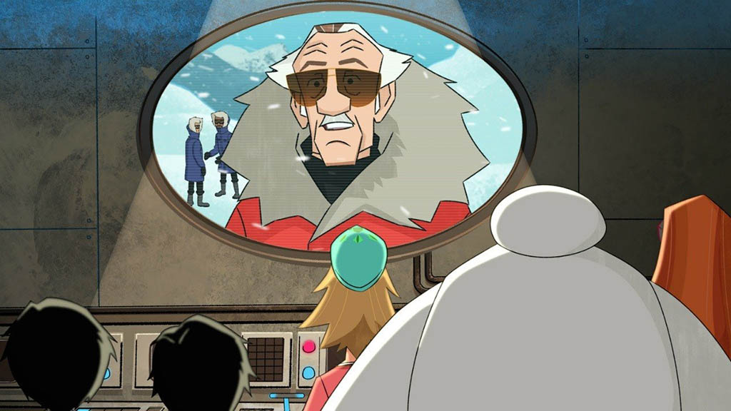 Пожалуй, самое абсурдное и неожиданное камео Стэна Ли — появление в мультфильме вечных конкурентов DC, единственное в своём роде. Более того, Стэн здесь откровенно хохмит по этому поводу: сначала говорит, что он в мультике DC и ему нужно уходить отсюда, а позже — что ему наплевать, что это не Марвел, он обожает камео.