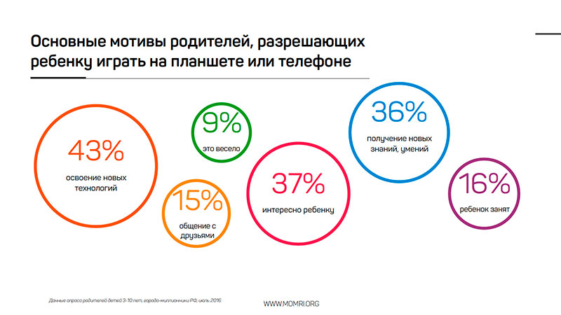 Исследование Института современных медиа (MOMRI) показало, что вопреки распространенным стереотипам, многие профессиональные психологи сходятся во мнении, что мобильные игры и развивающие приложения полезны для детей, особенно если они носят развивающий, интерактивный характер. Главное — соблюдать определенные правила.