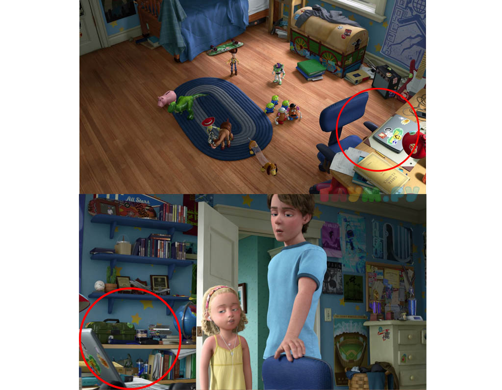 Когда повзрослевший Энди уходит из комнаты, видно, что ноутбук на его столе закрыт. А вот когда он возвращается, парень подходит уже к открытому компьютеру. Игрушки не заходили в Интернет, мы видели!