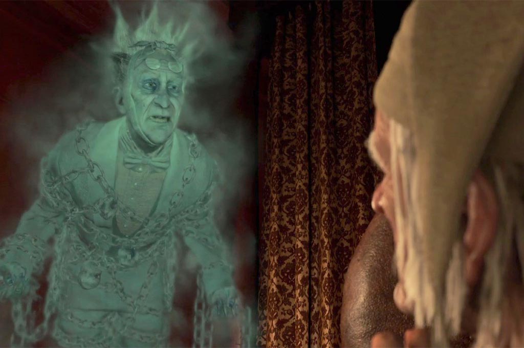 На картинке вы видите кадр из мультфильма Роберта Земекиса с Джимом Керри в главной роли, это 2009 год. Мог бы быть и другой — анимационных экранизаций повести Чарльза Диккенса нарисовали много и на любой вкус, хоть с Микки-Маусом. Одно остается неизменным — призраки и старина Скрудж, проходящий путь от скряги и брюзги к нормальному чувствующему человеку.