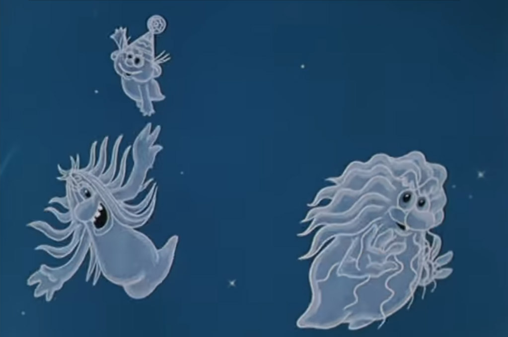 Переходим к короткометражкам, среди которых мы выбрали две, советские. «Ничуть не страшно» — красивая история о двух братьях, отправившихся ночью за цветами для мамы. Дорога до цели стала сражением со страхами, насылаемыми тремя симпатичными привидениями. Обратный путь прошел в совсем ином ключе, а в конце вы увидите редчайшее природное явление. Кстати, про эту троицу есть еще один мультфильм.