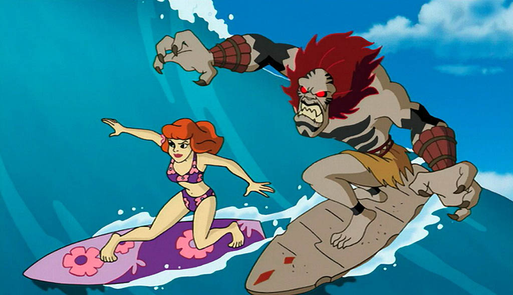 Так и здесь: гавайская история восьмого полнометражного мультфильма посвящена соревнованиям по серфингу, непременным сопутствующим злым духам и традиционным погоням за негодяями по волнам и не только. Главные герои серии на досках (включая Скуби) прилагаются.