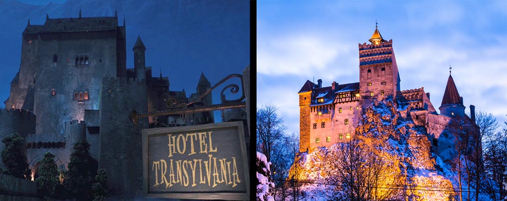 Что-то мы все про Disney — а ведь в мультфильмах других студий тоже появляются существующие в нашей реальности замки. Яркий пример — легендарный Бран, да, тот самый, в котором Влад Цепеш-Дракула ночевал. Эффектное готическое сооружение послужило прообразом для замка одного из самых добрых и веселых анимационных воплощений Дракулы в мультфильме «Монстры на каникулах».