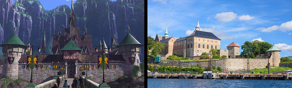 В числе заслуг старой крепости значится и роль источника вдохновения для создателей «Холодного сердца». Эренделл в мультфильме выглядит гораздо более сказочно и изящно, на наш взгляд, но сходство с главным норвежским замком проследить можно. Свозить ребенка в гости к Эльзе удастся во время посещения достопримечательностей Осло.