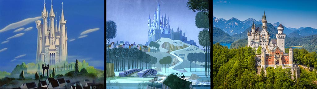 Именно с этого замка Уолт Дисней «срисовал» замок Спящей красавицы, который мы и по сей день видим в знаменитой заставке каждого мультфильма студии. Золушку, по слухам, тоже там поселили, причем это произошло раньше — просто сходство не столь заметное, да и мелькает он в мультфильме не очень явно.