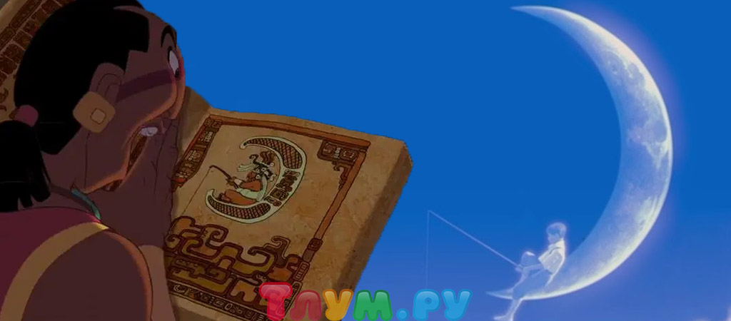 И логотип студии, открывающий зрителям каждый из мультфильмов, прост и лаконичен, а главное, способен запомниться каждому. Месяц, мальчик, удочка и небесная рыбалка. Аниматоры приключений Тулио и Мигеля добавили забавную деталь: Цекель-Кан — главный злодей мультфильма — листал книгу заклинаний, на одной из страниц которой расположилось, ага, лого студии. Ацтекская версия.