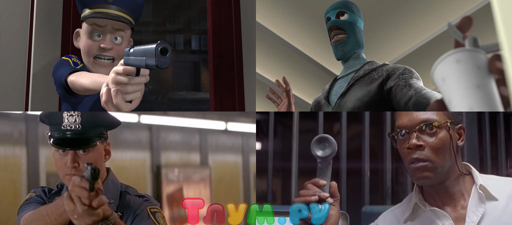 Люциус Бест, он же Фреон из супергеройской франшизы — какой актёр озвучивал персонажа в оригинале? Напоминаем: это был Сэмюэл Джексон. Сцена, в которой Люциуса и Боба пытается задержать полицейский, является переиначиванием похожего момента из фильма «Крепкий орешек», где… тоже играл Сэмюэл. Там речь идёт не о стакане с водой, а о телефонном автомате.