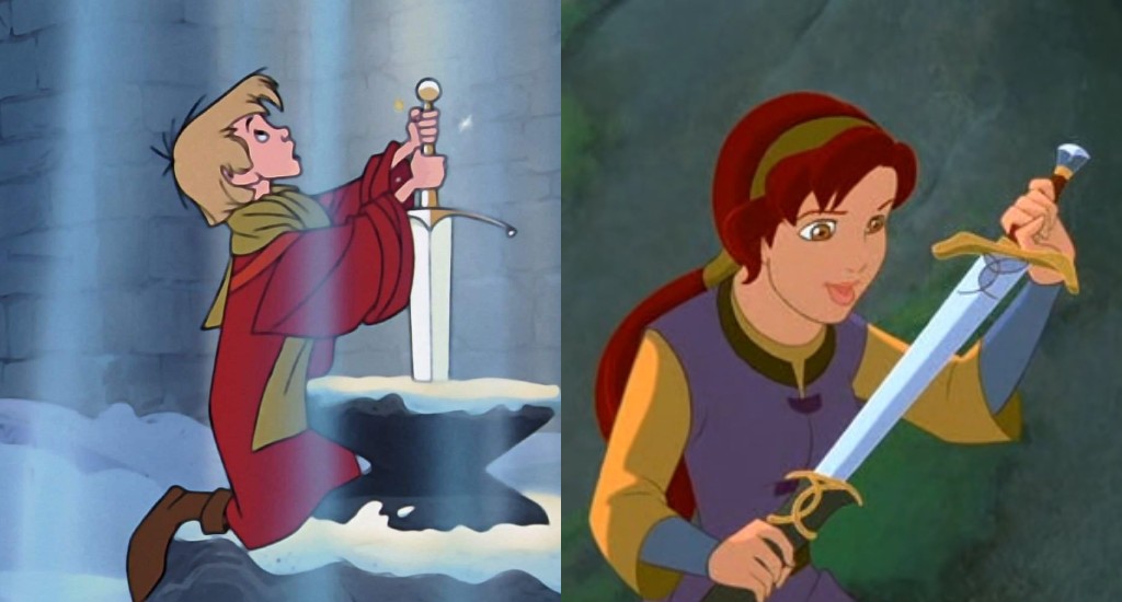 В чём отличие: Камелот основан на романе «Девица короля» Веры Чэпман, который, в свою очередь, берёт начало в Артуриане. Меч — одна из вариаций легенды, о юном Артуре анимационных историй не так много, как фильмов и сериалов.