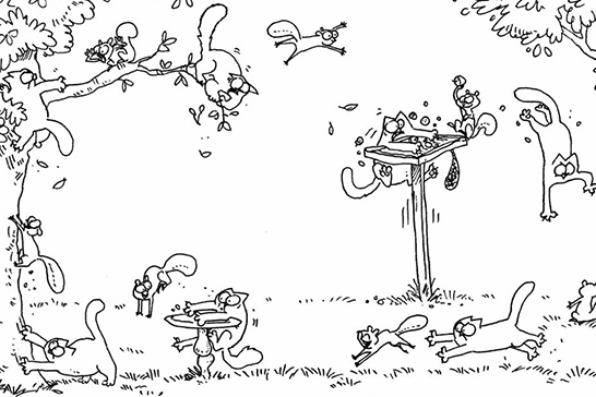 Это совсем другой формат мультфильма — серия двухминутных роликов, особо не связанных между собой сюжетом. Суть тут в том, что есть человек и у него живет кот. И этот кот — самый стереотипный кот из всего своего рода. Он просит открыть дверь и не входит в неё, устраивается спать в самые неожиданные и неудобные места, всё время хочет есть и обожает коробки. Если у вас есть домашний питомец — вы обязательно узнаете его в некоторых привычках чёрно-белого котика.