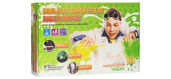 Этот набор заинтересует не только школьников, но даже учителей химии, не у всех них есть настолько детально обставленная лаборатория. С помощью этого подарка ребенок сможет устроить 80 научных экспериментов из разных областей химии. Он сможет на деле увидеть, почему кислота вредна для зубов, как защитить железо от ржавчины и как делается моющее средство. Для тех, кто только начал изучать химию, интерес к предмету будет обеспечен!