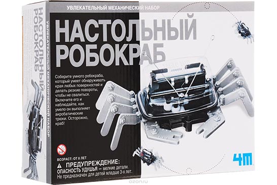 Ваш ребенок любит программирование, конструирование и мечтает в будущем иметь личного робота, который делал бы за него все домашние дела? Можно начинать идти к своей мечте уже сейчас. Это настольный робокраб, которого может собрать сам ребенок. Придется повозиться, зато потом — наблюдать за забавными акробатическими номерами в исполнении маленького робота. Будущее уже здесь!