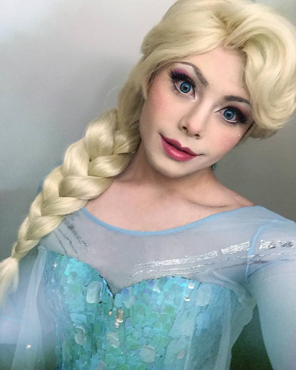 На каждое перевоплощение у Ричарда уходит около двух часов. Дома у парня уже скопилось больше 40 костюмов и 30 париков, которые помогают ему менять образы как перчатки. Иногда он собирает костюмы сам, иногда заказывает готовые в Интернете. По словам Ричарда, изначально с помощью этого увлечения он хотел уйти от реальности. Сложно поверить, но когда-то парень весил 120 килограммов и страдал от насмешек одноклассников. Но потом он решительно сбросил 45 кило и решил примерить образ своей любимой принцессы — Ариэль. И понеслось! Под прицел попали не только принцессы, но и другие героини мультфильмов.