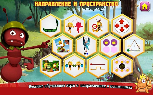 Знаменитая пчелка Майя предлагает поиграть самым маленьким пользователям. Интересная история в картинках, простые математические примеры, поиски фигур по силуэтам, игры на запоминание, раскраски и симпатичные пазлы — скучно не будет.