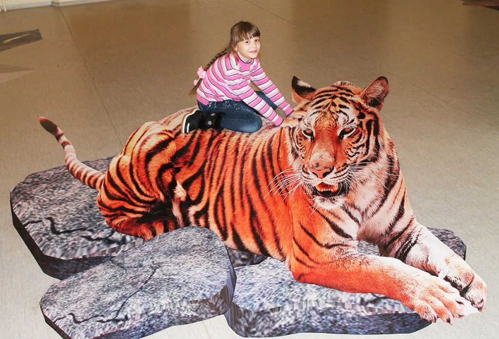 Впрочем, общая выставка трехмерных интерактивных инсталляций в торговом центре ВДНХ открыта и сейчас, так что все желающие визуально залезть на крышу высотки, побывать в центре торнадо или оседлать тигра могут легко это сделать.