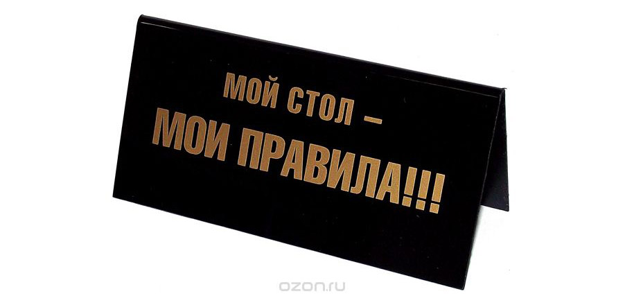 - Любителям творческого хаоса стоит посоветовать нечто в духе «Мой стол — мои правила», осознающим свое настоящее место в жизни — «Азъ есмь царь», работникам ресепшена и другим встречающим людям — «Вход платный, выход обязательный». Начальство не поймет, говорите?