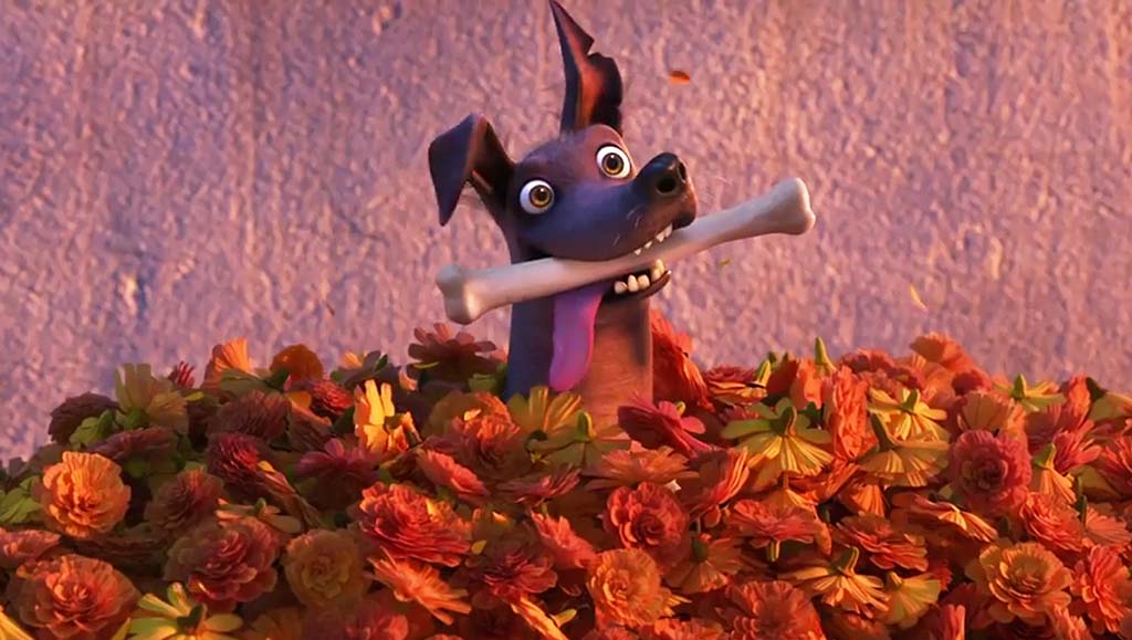 Отдельного упоминания заслуживает чудесный животный мир мультфильма. Вот Данте, позитивный бездомный пес особой мексиканской породы ксоло — про него очень верно сказали, что он как «сосиска, упавшая в парикмахерской». А его язык — просто отдельный персонаж мультфильма.