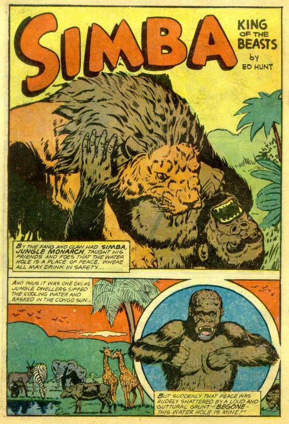 Ну, а сами Disney отвечали коротко: «Все совпадения случайны». Знать они ни о каком Кимбе не знали (что странно, учитывая большую популярность мультика про белого львенка в Америке), а вдохновлялись только «Гамлетом» и «Бэмби». А сам Осаму Тэдзука, кстати, тоже не из воздуха идею взял, а опирался на американский комикс «Симба: Царь зверей», где как раз про льва против охотников. Вот такой клубок из взаимных обвинений и непоняток. Кстати, комикс действительно выглядит как начало всей этой истории.