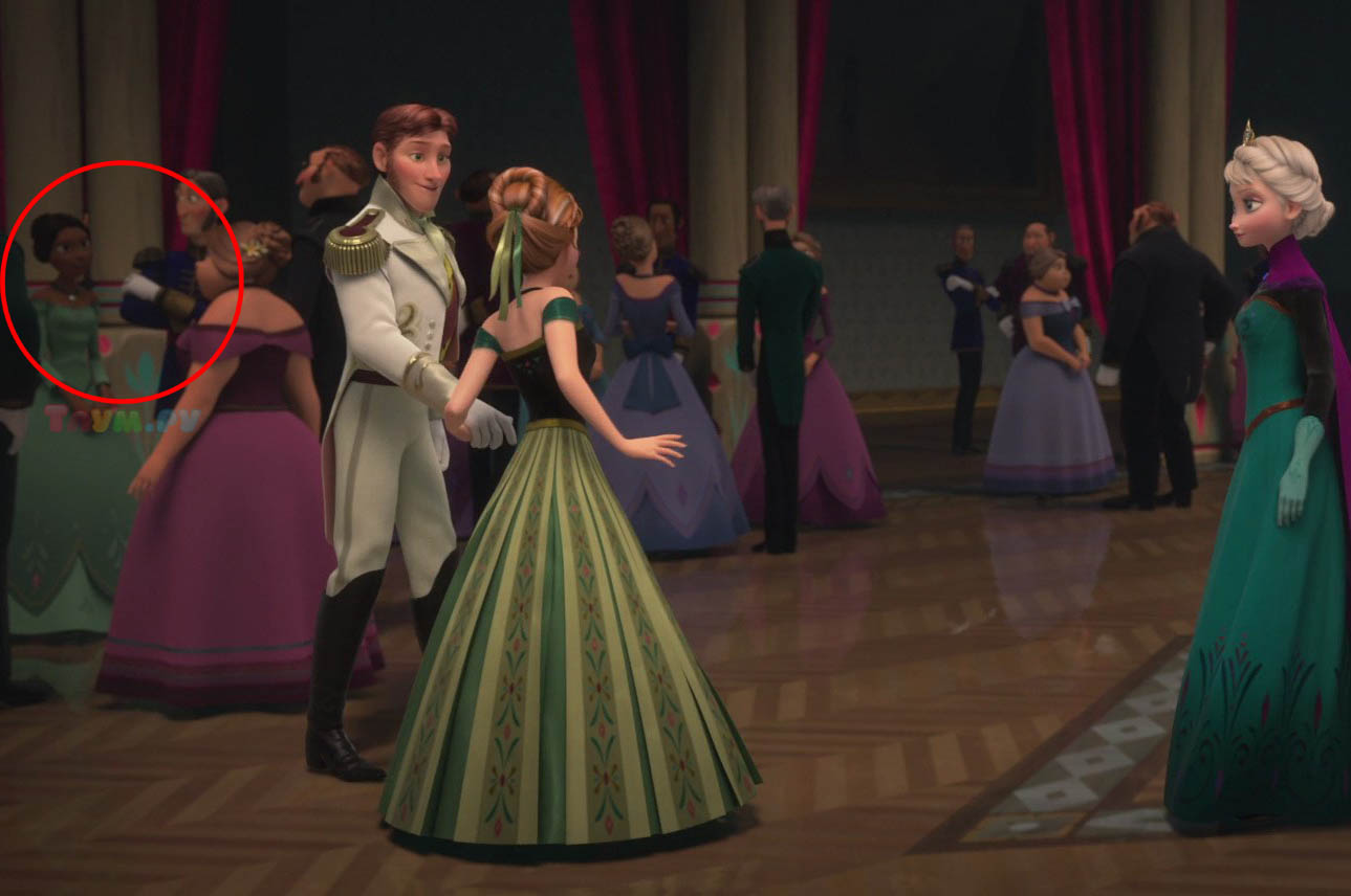 Например, на ту же самую коронацию пришла и другая принцесса — Тиана из «Принцессы и лягушки». Не знаем, что она там делала, но, надеемся, что принцессе пришлись по душе местные угощения.