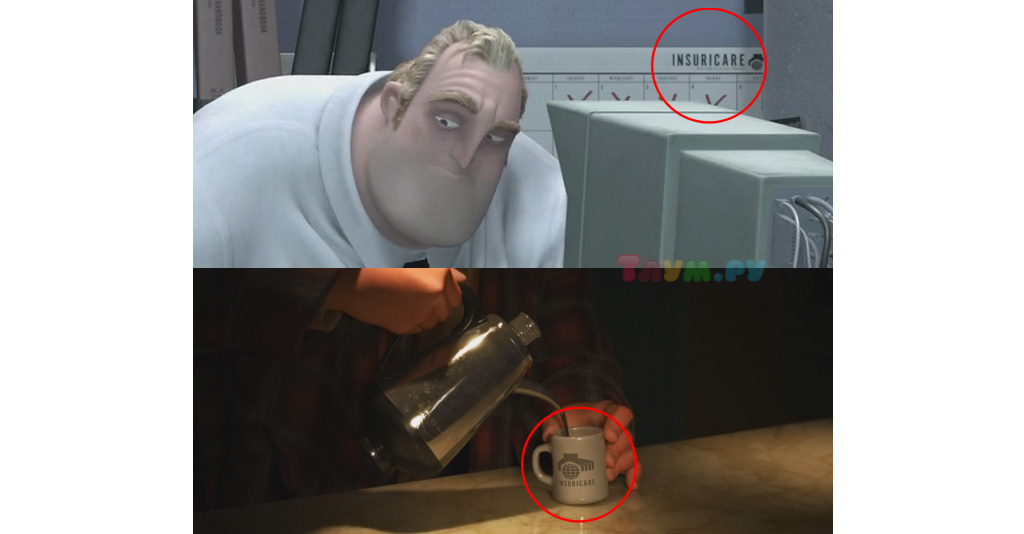 Также во второй части мультфильма «Суперсемейка» можно заметить, что Боб до сих пор пользуется кружкой с логотипом Insuricare — компании, из которой его уволили ещё в первом мультфильме. А вы бы сохранили такую кружку у себя?