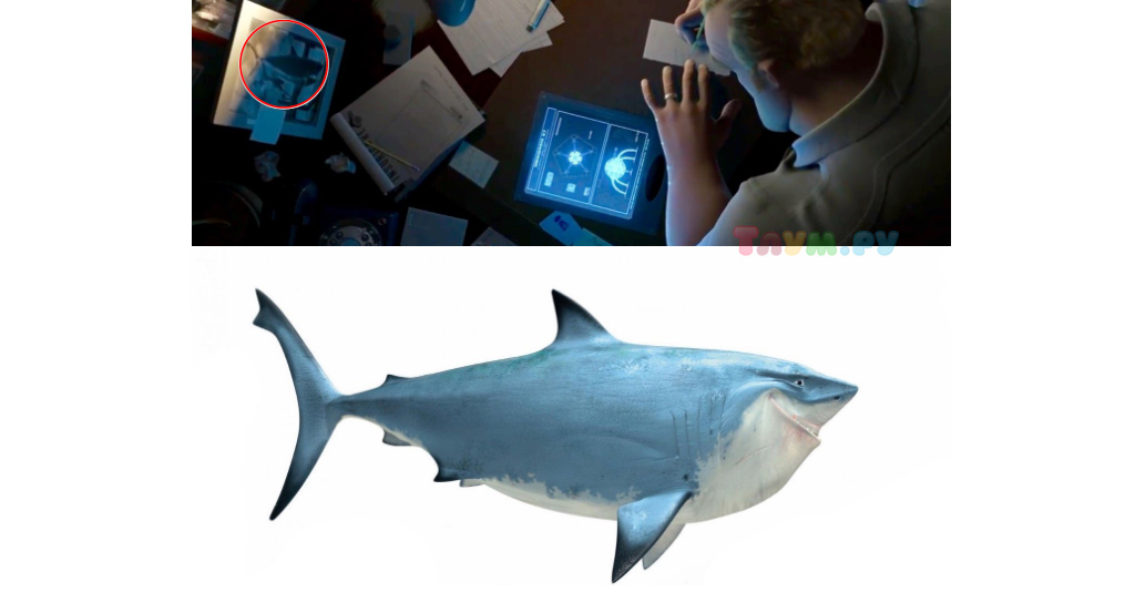Мистер Исключительный — крайне занимательная личность. Он не только мир спасать умеет, но и, по всей видимости, гений рыбалки. Ведь на его рабочем столе стоит фотография, где Боб изображён с внушительным уловом — акулой из мультфильма «В поисках Немо».
