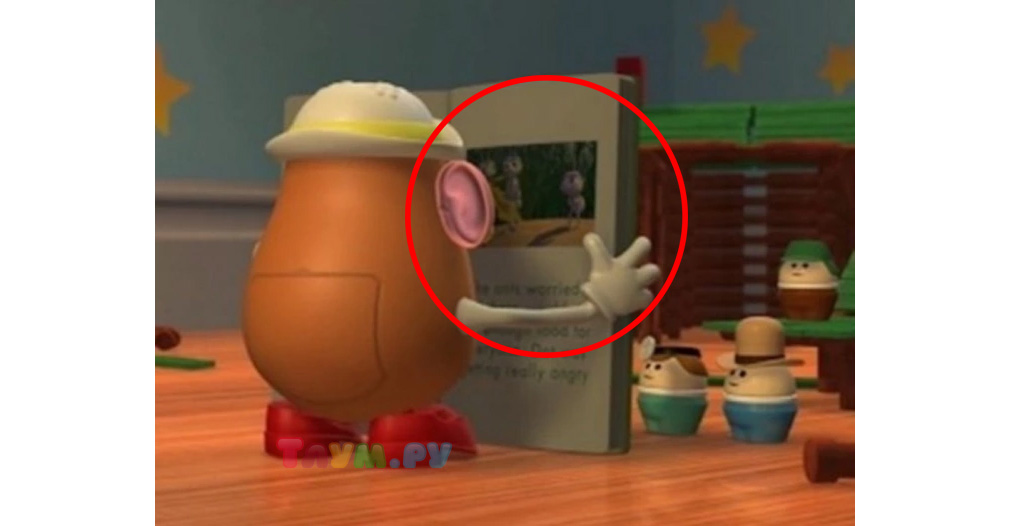 В «Истории Игрушек» Мистер Картофельная голова читает вслух сказку о Приключениях Флика. Мелочь, а забавно.