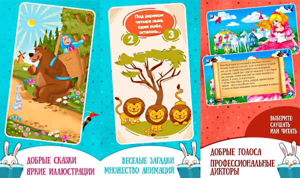 Удобное приложение, позволяющее скачать множество детских интерактивных книг. Навигация удобно разбита на шесть категорий: Сказки, Обучающие, Загадки, Авторские книги, Книги на английском и Демо. Лучше всего наполнены категории Сказки (отдельные книжки, а также сборники) и Обучающие (разнообразные энциклопедии, а также развивающие упражнения типа таблицы Шульца).