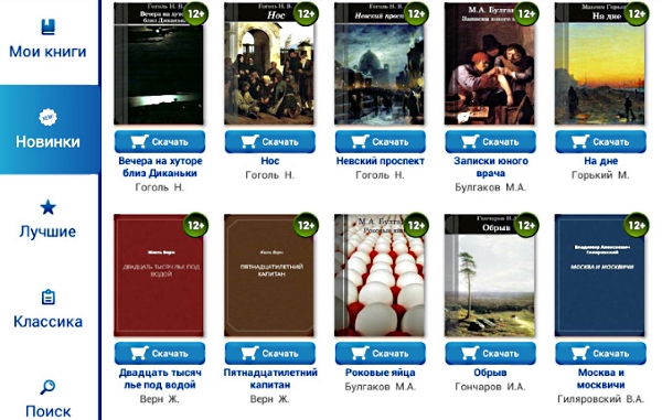 Перед нами приложение для читателей постарше, в котором собрано много электронных книг классических авторов. Гоголь и Горький, Жюль Верн и Проспер Мериме, Пушкин, Чехов, Достоевский, Булгаков и другие. Скачать их можно бесплатно.