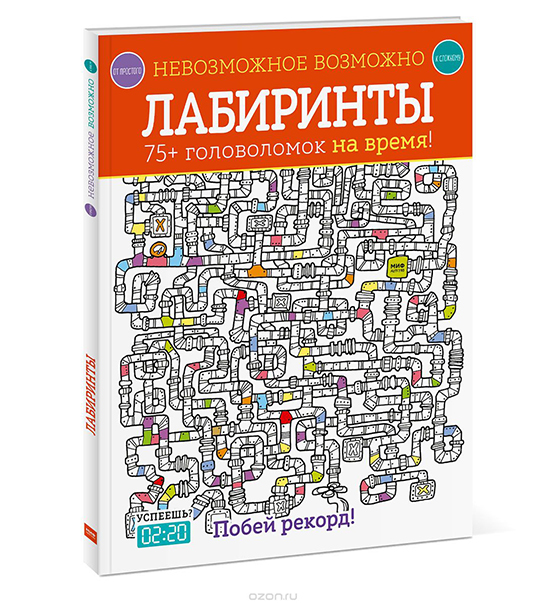 Любите гулять по городу и рассматривать окружающий мир? Тогда вам срочно нужна эта книга лабиринтов. Каждая дорожка тут ярко и детально прорисована, каждый красочный лабиринт занимает целую страницу либо разворот. Сложность лабиринтов возрастает под конец книги. Вы прогуляетесь и по красивым городам, и по природным достопримечательностям, даже посетите лунный город и планету-куб. В конце книги можно найти решения головоломок, однако для тех, кому нравится часами бродить по лабиринтам, процесс может быть важнее цели.