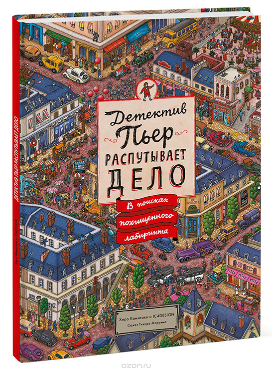 Это не просто сборник головоломок, это настоящая книга со своими героями и сюжетом. Детективу Пьеру предстоит отправиться в погоню за злодеем Мистером Иксом, похитившим из музея кое-что очень важное. На страницах вас ждут не только детально проработанные лабиринты, но и задания на внимательность. Это книгу даже назвают виммельбухом. Вашему юному следователю точно придется по вкусу захватывающее приключение в красивом оформлении.
