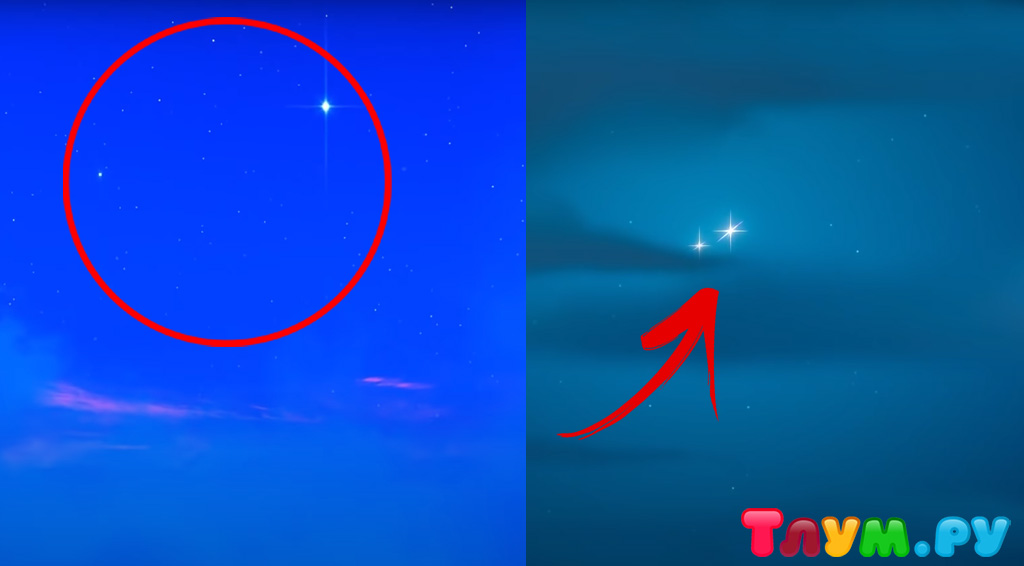 Когда-нибудь задумывались, откуда взялись две звезды в заставке мультфильмов студии Disney? Кажется, мы нашли ответ — он кроется в мультфильме «Принцесса и лягушка». Когда светлячок Рэймонд погиб, он оказался на небе вместе со своей возлюбленной — и они превратились в два светила.